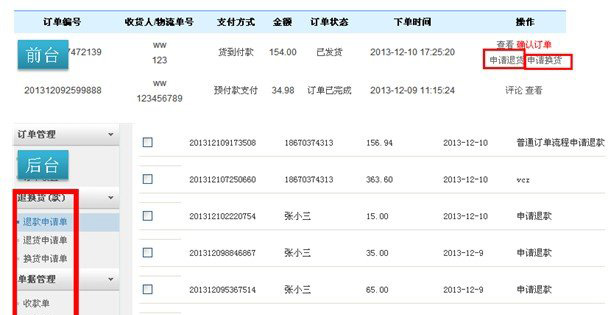 【新增】订单/采购单退换货、及单据管理;会员可以在线申请退换货;