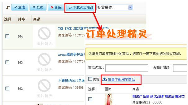 【新增】主站能订购“订单处理精灵”通淘宝,能从淘宝天猫下载商品到独立店;